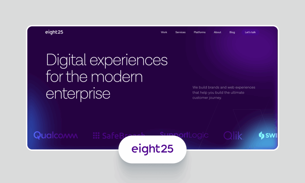 eight25Media is a global digital agency that delivers impactful web experiences for enterprise-level B2B technology companies. Since 2011, they’ve scaled to 150+ specialists across three global offices and delivered web transformation programs for 500+ leading brands including Google, Samsung, Hyundai, and Qlik.
