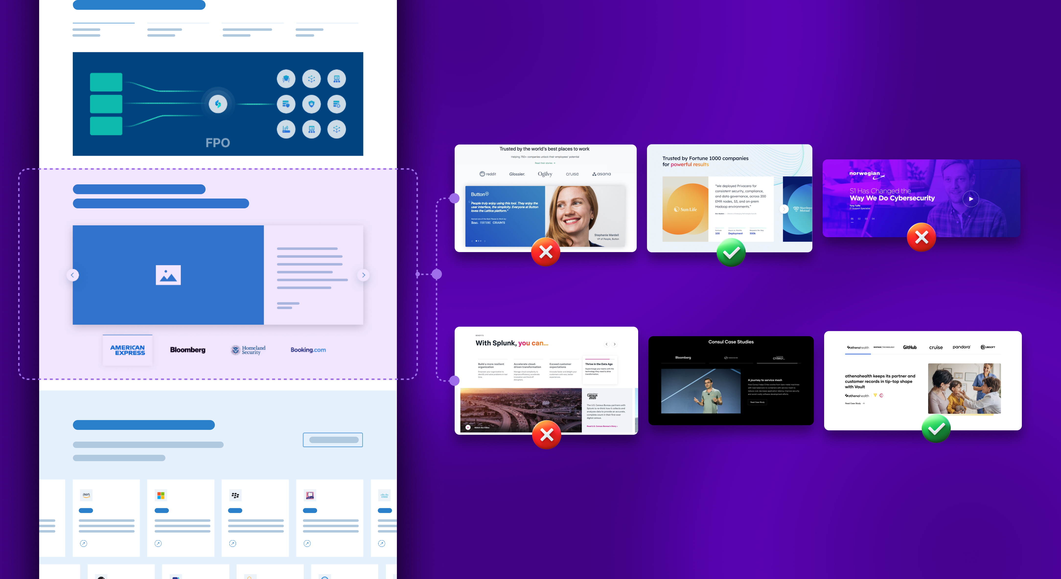 - Instead of debating whether an entire page feels “on brand,” stakeholders evaluate focused options for a single hero layout or CTA style.